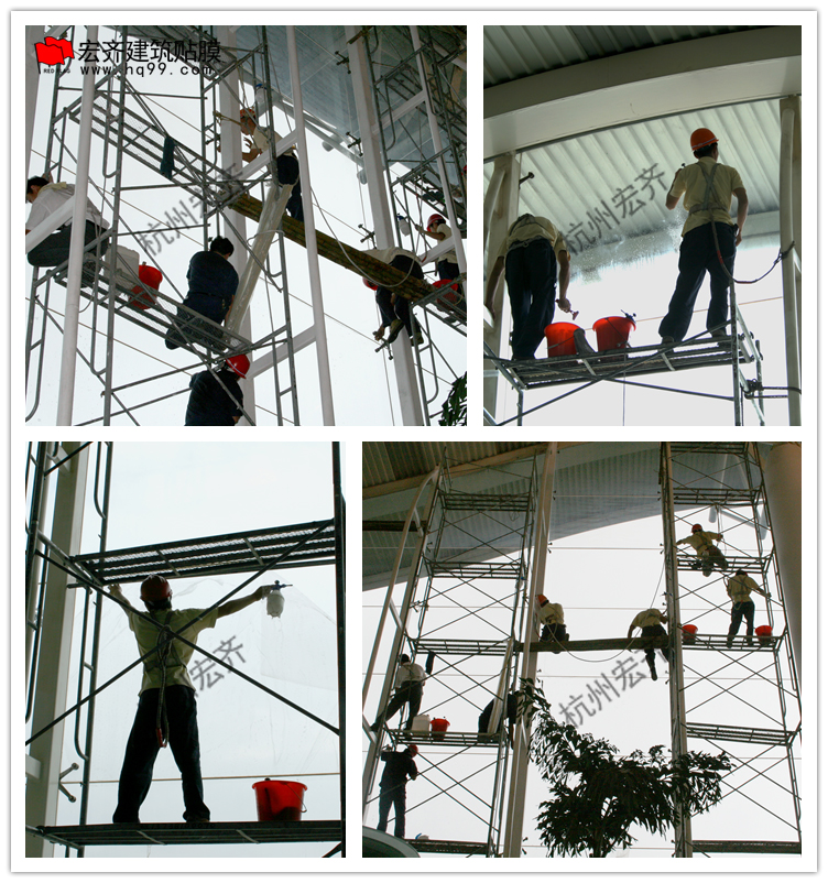 解決方案:整個(gè)候機(jī)大樓玻璃幕墻安裝3M安全防爆膜,由于是點(diǎn)爪式幕墻玻璃,施工有一定難度;大部分玻璃是彩釉玻璃,只能外貼。機(jī)場重地案件一關(guān)要求很嚴(yán)格,所有施工人員必須提供無犯罪記錄和擔(dān)保,所有施工工具和設(shè)施都要登記。高空部分高度在15米以上,需要搭設(shè)腳手架。